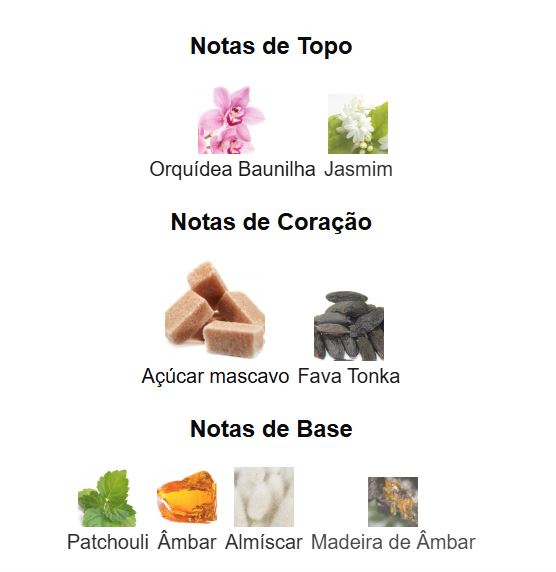 Notas de topo: Orquídea Baunilha e Jasmim