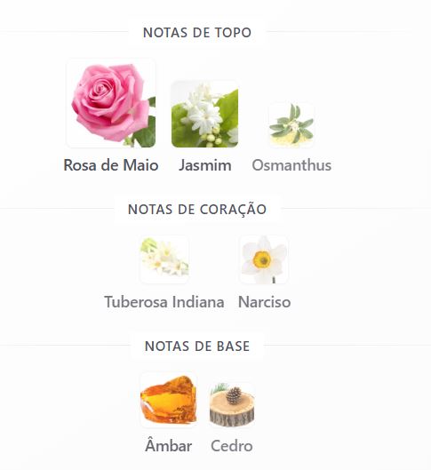 Notas de topo: Rosa de Maio, Jasmim e Osmanthus.