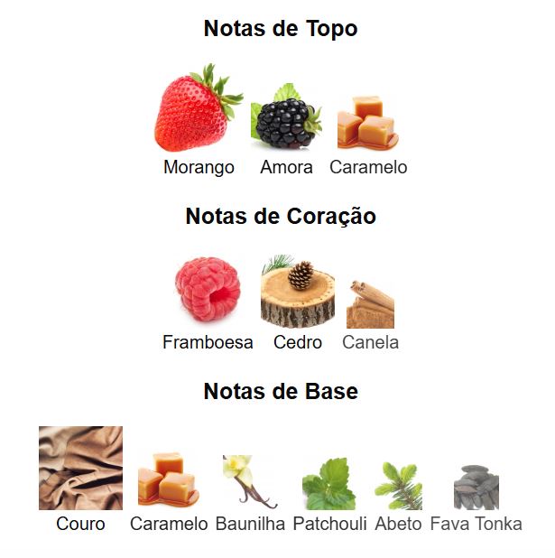 Notas de topo: Morango, Amora e Caramelo.