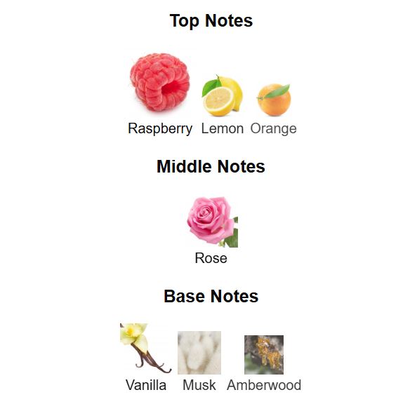 Notas de base: Baunilha, Almíscar e Madeira de Âmbar.