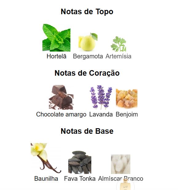 • Equilíbrio perfeito: a fusão entre notas aquáticas, especiadas e gourmand cria uma assinatura única e memorável.