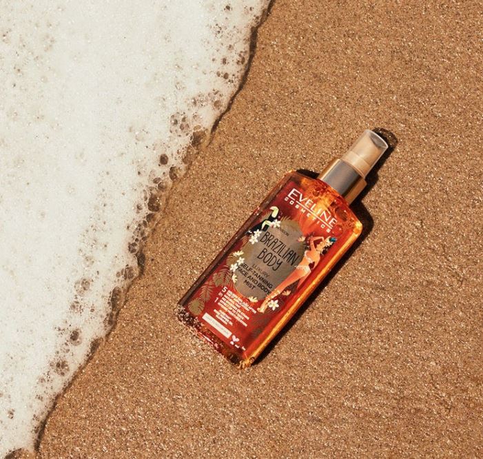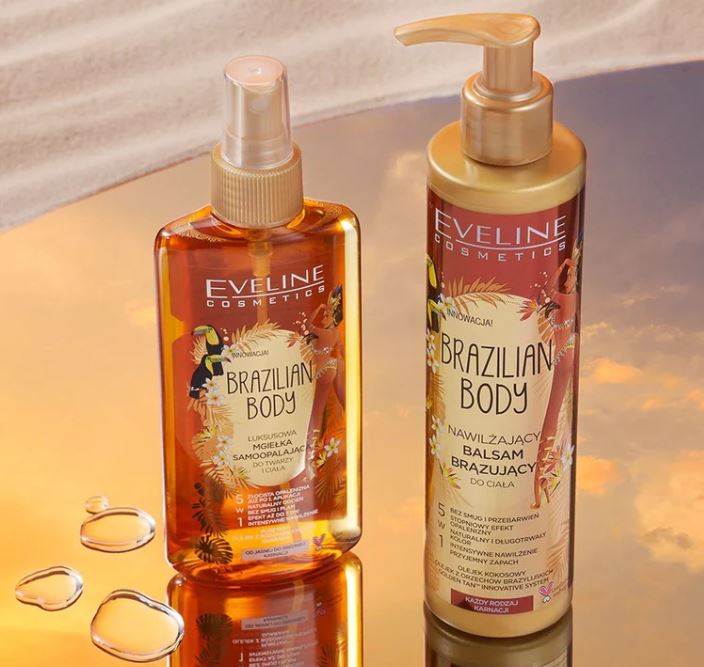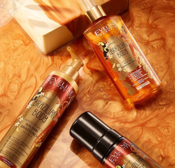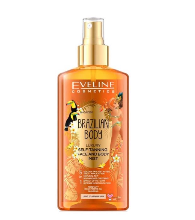 Transforma a tua pele em segundos com o Spray Corporal Hidratante Brilhante Eveline Brazilian Body. Uma névoa leve que combina partículas luminosas e óleos nutritivos para oferecer um tom dourado impressionante, disfarçar imperfeições e realçar a tua silhueta — tudo enquanto hidrata profundamente e deixa um aroma exótico e delicioso.