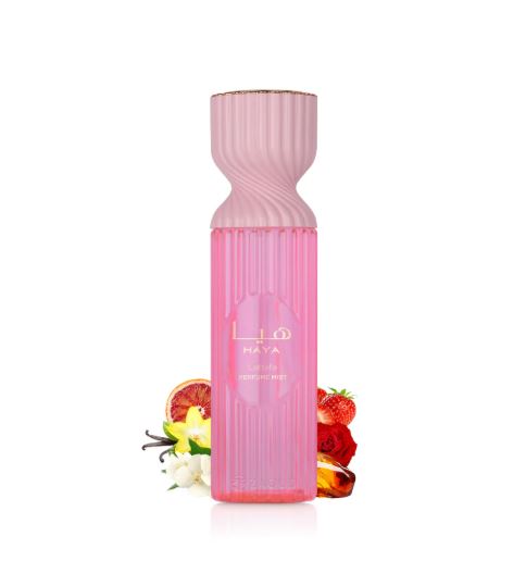 Haya é um perfume mist pensado para quem quer perfumar o corpo e o cabelo com delicadeza: fresco, elegante e com um rasto que aconchega. Uma névoa que combina frutas suculentas, um coração floral cremoso e um fundo quente e amadeirado — perfeito para usar ao longo do dia quando queres renovar o aroma sem pesar.